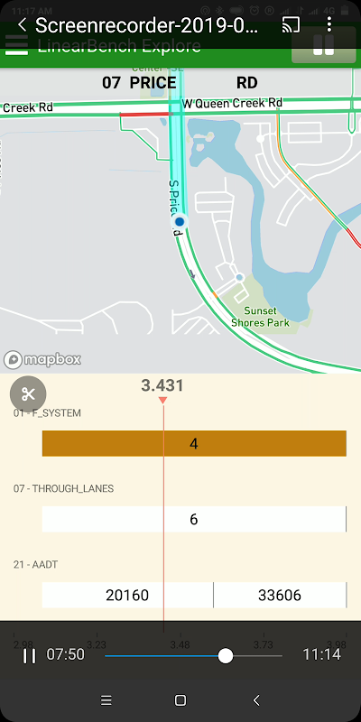 With LinearBench Mobile on phones or tablets, highway transportation professionals can access highway attributes or events such as AADT, Functional Systems, Number of Lanes, etc. through the intuitive SLD (Straight Line Diagramming) and Map UI while driving or infield.