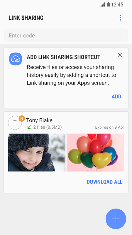 . Send to contacts, Create a link, Share with Code
