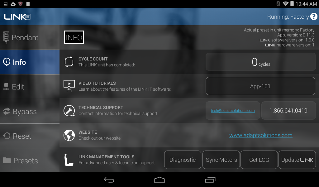[email protected] Các ứng dụng LINK IT đã được phát triển để sử dụng bởi các trình cài đặt thiết bị di động có trình độ mà làm việc chặt chẽ với Adapt Solutions. Nó là cần thiết để cài đặt các giải pháp truy cập sáng tạo - LINK. Sản phẩm này được thiết kế để hỗ trợ người có tính di động hạn chế trong hoặc ra khỏi chiếc xe của họ. Các LINK sử dụng chỗ ngồi của xe và có nhiều tính năng mà là một lợi ích cho một chuyến đi thoải mái. Các ứng dụng LINK IT cho phép các kỹ thuật viên, cài đặt các cơ sở chỗ ngồi vào một chiếc xe để kiểm soát sự chuyển động của ghế cũng như để chương trình chuyển động và tùy chỉnh chúng để xe và khách hàng. Cập nhật sẽ cung cấp các ứng dụng xe mới và nâng cấp cho hệ thống của chúng tôi.