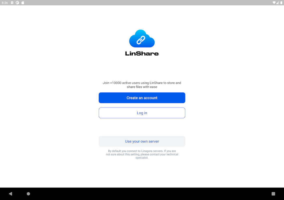 Người dùng tại chỗ vẫn có thể sử dụng ứng dụng di động LinShare bằng cách kết nối với bất kỳ phiên bản nào của máy chủ LinShare. Để đăng nhập, chỉ cần sử dụng URL máy chủ của bạn.