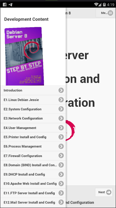 Sách điện tử Linux Debian 8 Server khóa học ở dạng ứng dụng Android.