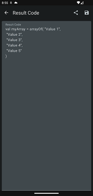 List 2 Array là một ứng dụng giúp bạn chuyển đổi bất kỳ danh sách dữ liệu nào thành khai báo mảng cho các ngôn ngữ lập trình khác nhau. Bạn có thể chọn Kotlin, Java, Dart, C#, Swift hoặc Python làm ngôn ngữ mục tiêu. Ứng dụng này cũng cho phép bạn chia sẻ hoặc lưu kết quả vào bộ nhớ thiết bị một cách dễ dàng. List 2 Array là một công cụ đơn giản và hữu ích cho các nhà phát triển, những người cần chuyển đổi danh sách thành mảng một cách nhanh chóng và chính xác.