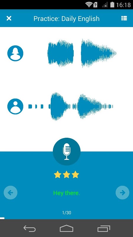 「リッスン&リピート」アプリには音声認識エンジンが搭載されており、あなたが話したフレーズが、どのくらいネイティブに通じるかを評価してくれます。