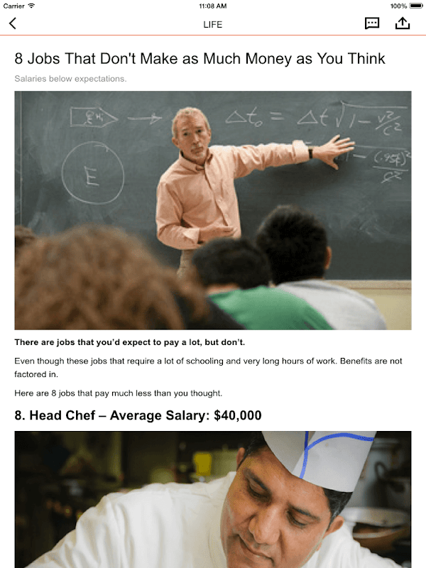One tap to share listicles with Email, Messages, Facebook and Twitter.