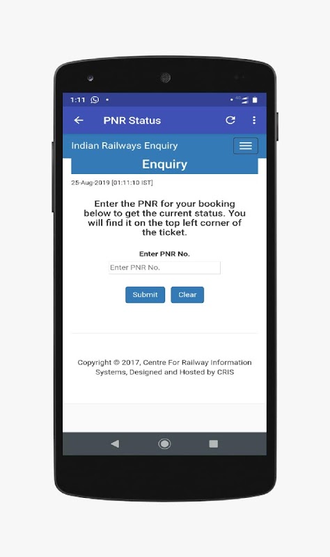 * PNR Status :- Check PNR status of your ticket. This helps when your ticket is in waiting. You can check whether your ticket is confirmed or not.