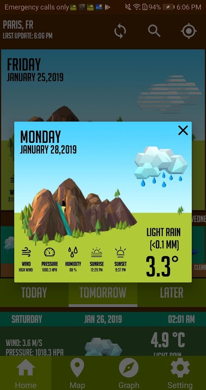 ☀️ This daily weather app display current temperature, daily and hourly forecasts, sunrise and sunset time, humidity, wind speed and air pressure with weather today & weather tomorrow.
