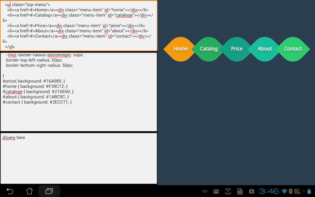 Finally, an Android Web Editing program that is in Real Time! Edit your HTML, CSS, and even jQuery.