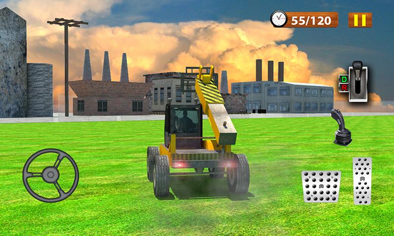 Heavy telehandler simulator 3D is a unique truck driving game in which you have to drive and control like a pro racing driver. The objective of this telehandler game is to make most use of your forks. During you day shift you will need to drive your telehandler truck from a parking lot to the nearest wheat field by following the arrows! There you will pick up the big piles of hay by the help of your heavy machine and then drive towards flour factory to deliver wheat by crossing different hurdles placed on the way. Your duty is to ensure continued wheat supply to the flour mill. You will move this heavy duty cargo telehandler truck to its destination with precision and accuracy. The village telehandler simulator has 10 challenging levels with HD graphics unseen in forklift games!