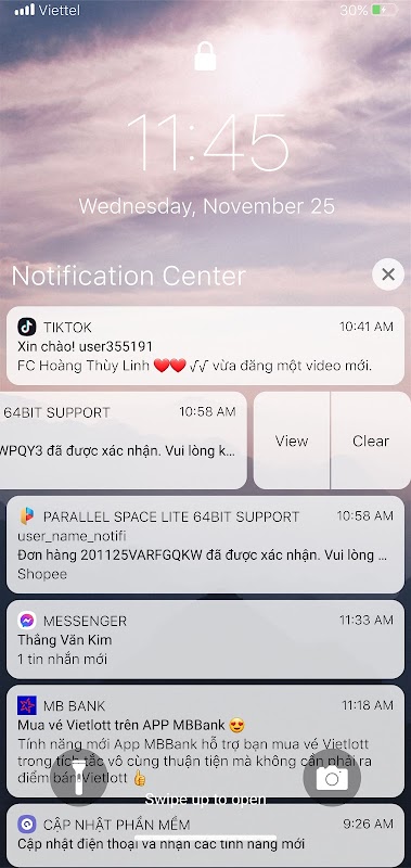 - Vuốt sang trái hoặc phải qua các thông báo để quản lý, xem hoặc xóa các thông báo.