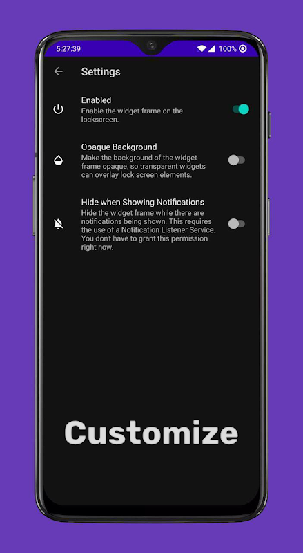 - Trình nghe thông báo. Quyền này chỉ được yêu cầu nếu bạn muốn ẩn khung tiện ích khi thông báo được hiển thị. Bạn sẽ được nhắc nếu cần thiết.