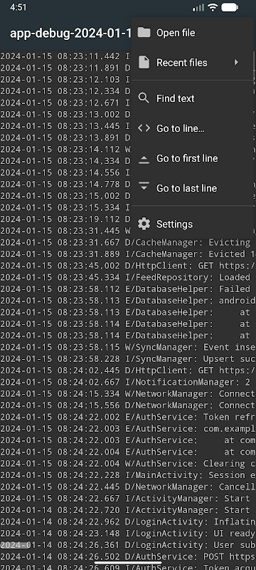 Xem các tập tin nhật ký với các cấp độ được mã hóa màu sắc, tìm kiếm toàn văn và cuộn nhanh.