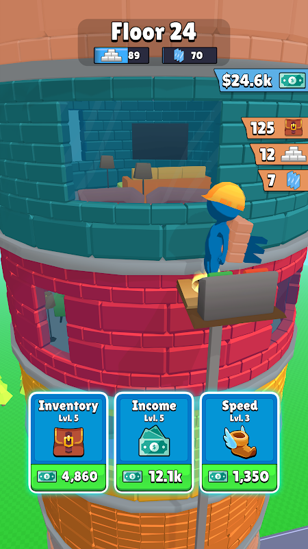 Chạy xung quanh tòa nhà để thu thập tài nguyên và xây dựng tòa tháp của bạn!
