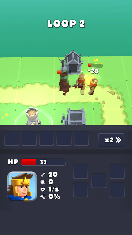 Watch your hero, fight with various enemies, set up helpful buildings each loop!