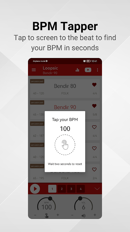 ⚡ Bạn có thể đặt nhịp độ/BPM bằng cách chạm vào màn hình nhờ các thuật toán được phát triển đặc biệt.