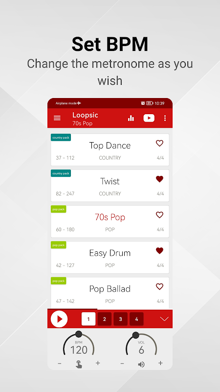 ⚡ Hòa mình vào các bài hát của bạn bằng các bản nhạc có nhịp điệu thực sự thay vì âm thanh máy đếm nhịp nhàm chán.