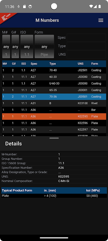Số M: Tra cứu nhanh các số nhóm khả năng hàn kim loại cơ bản (Số vật liệu) cho quy trình hàn và đánh giá hiệu suất. Dữ liệu được C-spec cung cấp từ nguồn chính dùng để tạo, hiệu đính và bảo trì AWS B2.1 Bảng C.1 và C.2.