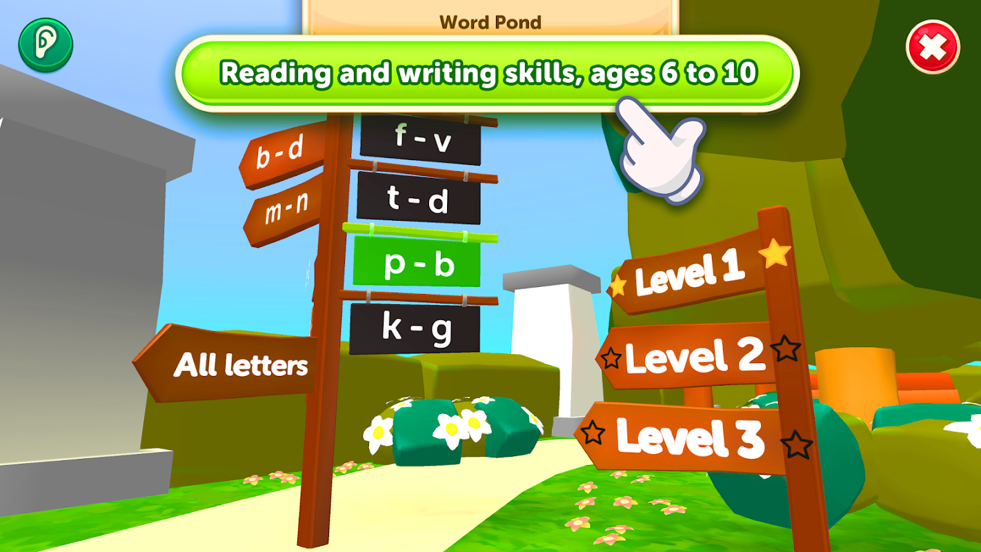Word Pond: develop the ability to visually process similar graphemes and similar auditory phonemes.