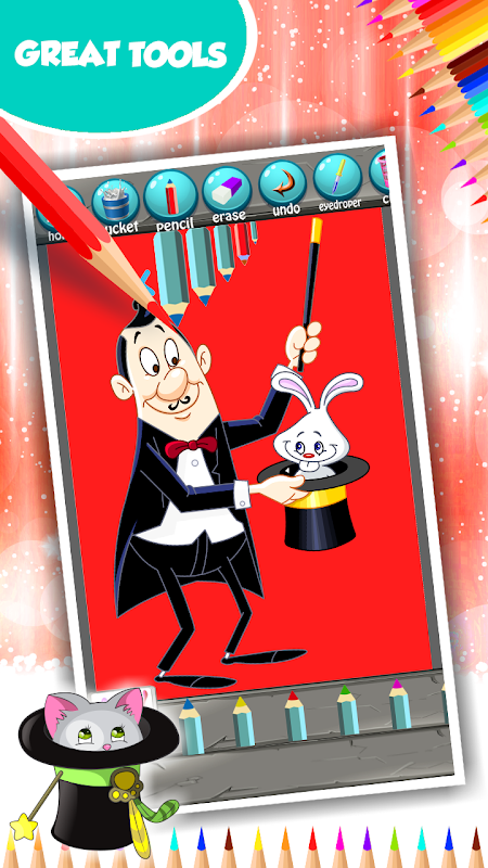 Trải nghiệm nghệ thuật biểu diễn lâu đời nhất trên thế giới và để cho người vui chơi giải trí cho bạn với ảo tưởng. Tải miễn phí ứng dụng Cuốn sách Màu Mắt Mới nhất trên điện thoại của bạn và bạn sẽ được mê hoặc với con thỏ tuyệt vời mà bất ngờ xuất hiện trong chiếc mũ hàng đầu. Chàng trai giữ chiếc áo này thật dễ thương đến nỗi nó tan chảy trái tim của bạn. Không có lý do để không nhấp vào thùng sơn và lấp đầy khoảng trống của các họa sĩ ảo thuật tuyệt vời. Thực hiện những bức ảnh đẹp nhất và sử dụng chúng để trang trí điện thoại thông minh của bạn và cho thấy bạn đánh giá cao nghệ thuật biểu diễn lâu đời nhất Không cần phải nhút nhát vì bạn là người lớn lên vì đây là trò chơi tuyệt vời nhất dành cho cả trẻ em và người lớn. Bất cứ ai cũng có thể chơi nó vì nó rất dễ dàng. Hiển thị cho trẻ em của bạn và họ sẽ được thrilled với người đàn ông mặc chiếc áo choàng dài màu đen và đội mũ trên đầu đã sẵn sàng để lừa khán giả. Họ sẽ được vui chơi tuyệt vời trong khi họ đang vẽ. Không có lý do để không có được các nhà ảo thuật phổ biến màu ứng dụng.
