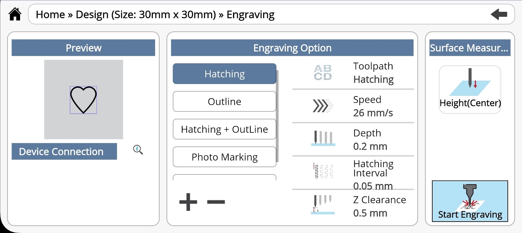 Nó cung cấp các tính năng tiện lợi như hỗ trợ mẫu, sử dụng nhiều loại phông chữ, dễ dàng thêm/chỉnh sửa/xóa nội dung khắc, một loạt công cụ hỗ trợ thiết kế, đăng ký và thu hồi các thiết kế được sử dụng thường xuyên và điều khiển Bluetooth không dây của thiết bị. máy khắc giúp bạn dễ dàng phản hồi các khách hàng khắc tại cửa hàng.