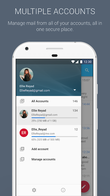 Tư nhân và an toàn - Hỗ trợ đầy đủ cho OAuth 2.0 giao thức xác thực và mã hóa SSL cho tất cả các kết nối IMAP. mật khẩu tài khoản được rất nhiều mã hóa.