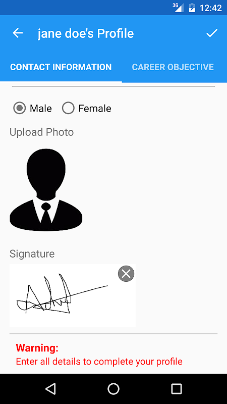 You can save your all the details for the further use so you don't have to enter the details every time. You can also save multiple profile if you want to create different kinds of resume or resume for different person.