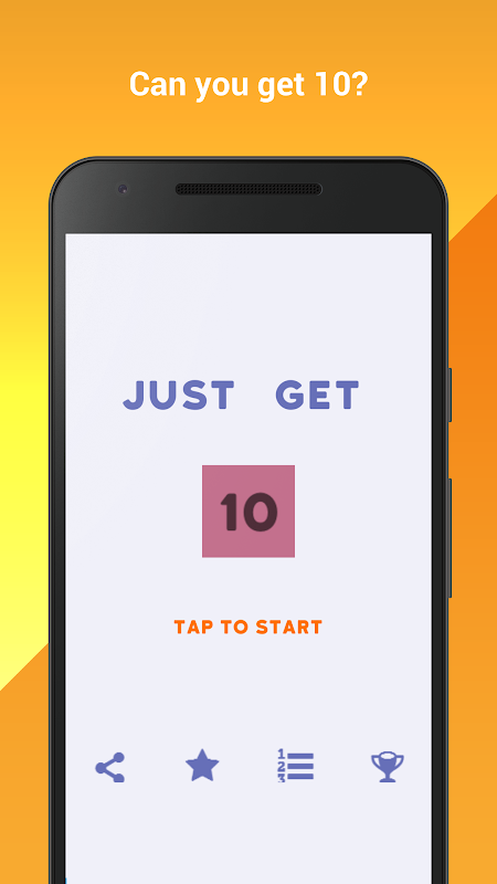 Chỉ cần nhận được 10 có một thiết kế đơn giản và đầy màu sắc. máy tính bảng cũng được hỗ trợ. Gửi điểm số của bạn để bảng xếp hạng. Mở khóa những thành tựu. Miễn phí trò chơi đố. Thưởng thức!