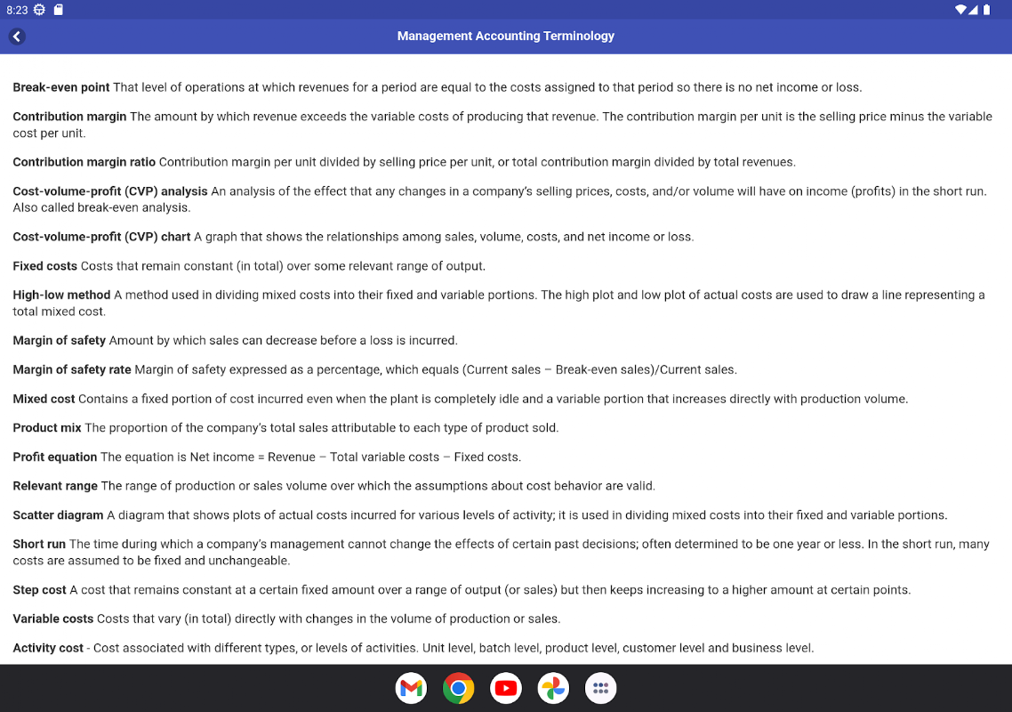 Bài giảng Kế toán quản trị và tài liệu học tập ở một nơi dành cho sinh viên. Tìm hiểu cách xác định, đo lường, phân tích và giải thích thông tin kế toán để ra quyết định nội bộ. Ứng dụng này sẽ giúp chuẩn bị cho kỳ thi. Để thuận tiện cho bạn, ứng dụng này cũng bao gồm tất cả các thuật ngữ Kế toán quản lý cần thiết. Vì vậy, bạn có thể học và ghi nhớ tất cả các thuật ngữ Kế toán quản lý cần thiết một cách dễ dàng.