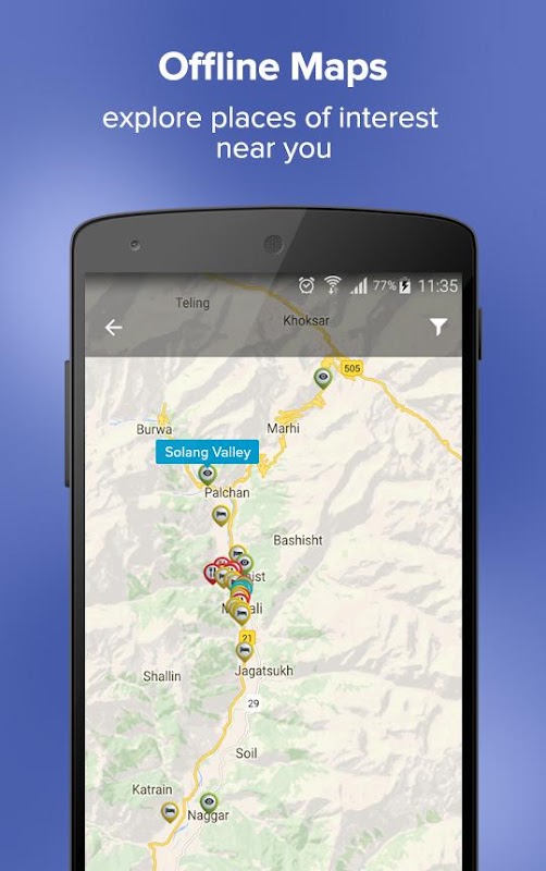 • INTERACTIVE OFFLINE MAPS: View entire Manali Travel Guide on interactive city maps. Offline maps act like your personal travel companion whether you are on Mall Road or in Hadimba Temple. Use filters in map to discover hotels, restaurants or things to do near you.