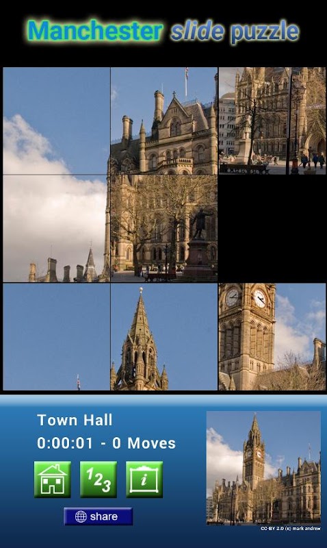 Manchester Slide Puzzle. The classic slide puzzle game, arrange the pieces to complete the picture. This edition contains wonderful high-quality, high-resolution Manchester photos.