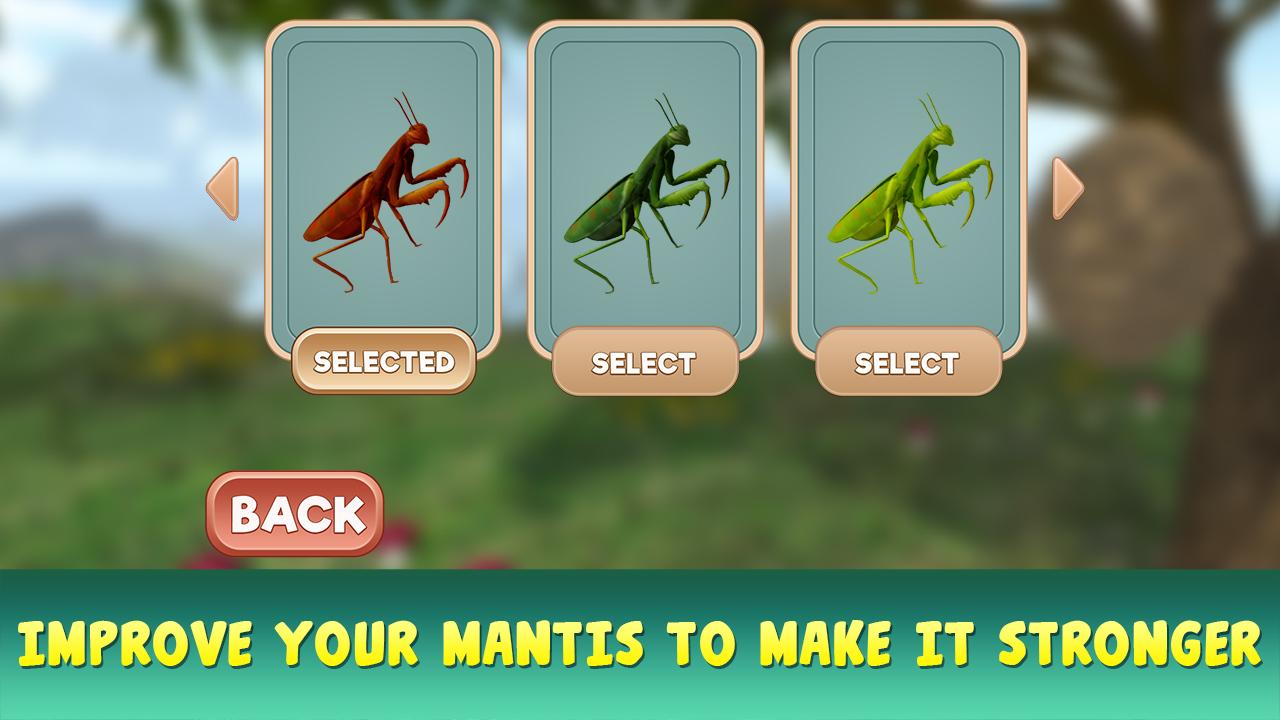 Earn points for successfully completed missions and unlock new interesting skins for your mantis to look like large brown mantis (a.k.a Australian stick mantis), conehead mantis (Empusa), Mediterranean mantis (a.k.a. iris mantis), Malaysian giant dead leaf mantis, or giant Malaysian shield mantis! Power its characteristics up to have an opportunity to live longer and just enjoy Mantis Insect Life Simulator!