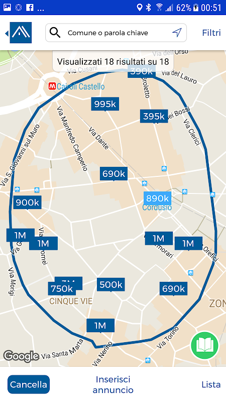 Chỉ cần viết ở đâu và làm thế nào bạn muốn ngôi nhà của bạn, ví dụ: penthouse milano với khu vườn riêng và các ứng dụng sẽ cho bạn thấy mapcasa.it chỉ quảng cáo trong thành phố mà bạn đã viết và có các tính năng mà bạn cung cấp. Sau khi tìm kiếm, bạn có thể tiếp tục lọc các quảng cáo hiển thị, thêm nhiều từ khóa hoặc cụm từ, hoặc bằng cách vẽ trên bản đồ ưu tiên khu vực của bạn.