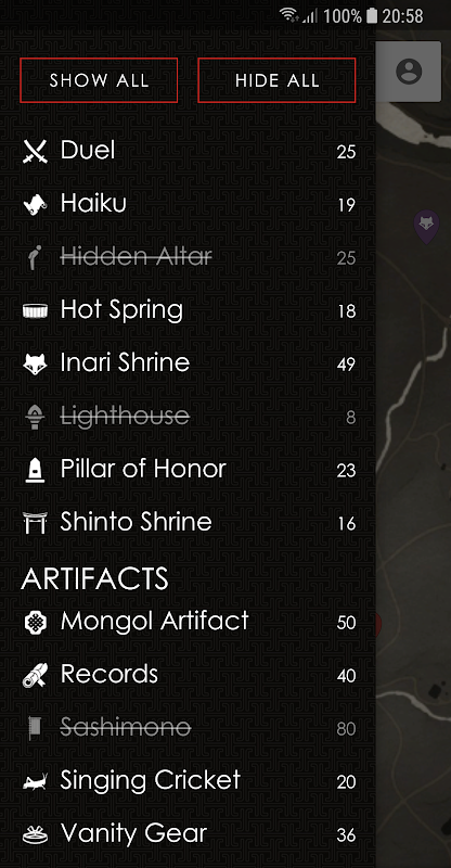 Ứng dụng đồng hành cho bản đồ Tsushima không chính thức của Map Genie