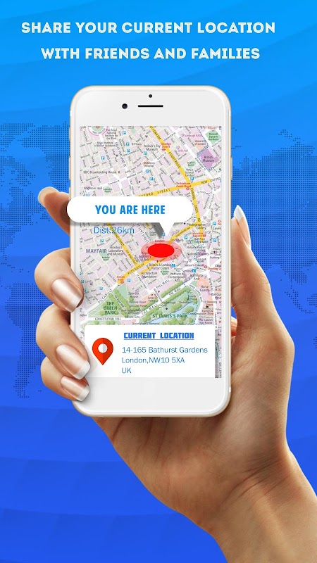 Tùy chọn này sẽ giúp bạn tìm địa chỉ của một vị trí không xác định trên bản đồ. Chỉ cần chọn địa điểm bạn muốn biết địa chỉ và Bản đồ, GPS, Điều hướng và Chỉ đường lái xe sẽ hiển thị cho bạn địa chỉ chính xác của địa chỉ đó. Bạn có thể chia sẻ GPS của mình với bạn bè và các thành viên trong gia đình.