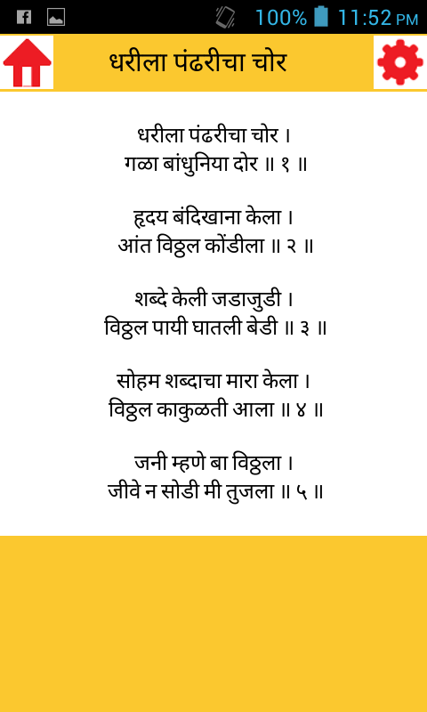 Ứng dụng này cung cấp một bộ sưu tập nổi tiếng của Marathi Abhang, Bhanan, Gaulan và Bhaktigite.
