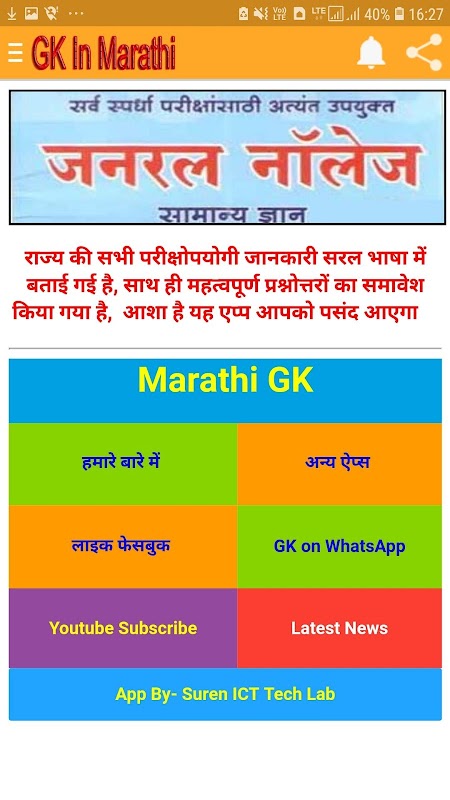 Bạn có thể đọc Marathi Gk trong ứng dụng này trong Marathi, ứng dụng rất hữu ích