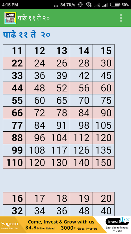 पाढे ११ ते २०