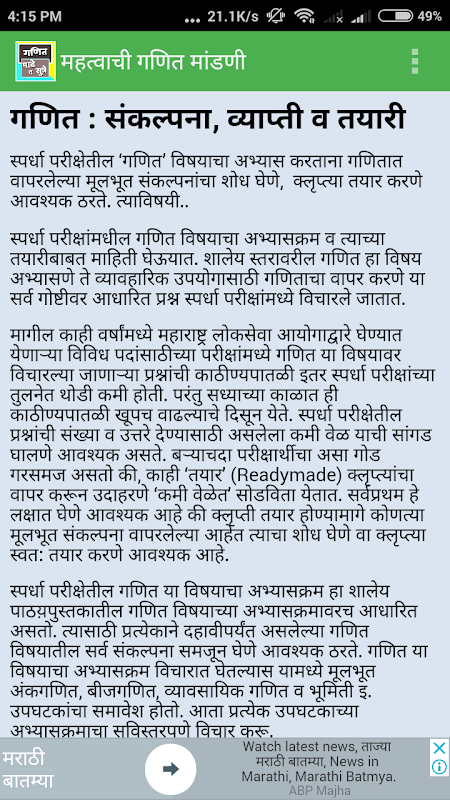 गणितातील पाढे व महत्वाची सुत्रे सविस्तर अभ्यासासाठी उपयुक्त