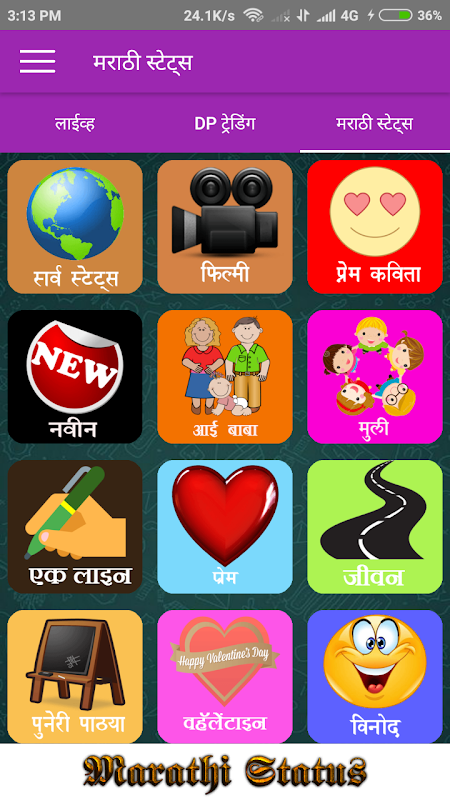 Phiên bản cũ của Marathi Status and DP (मराठी स्टेटस)