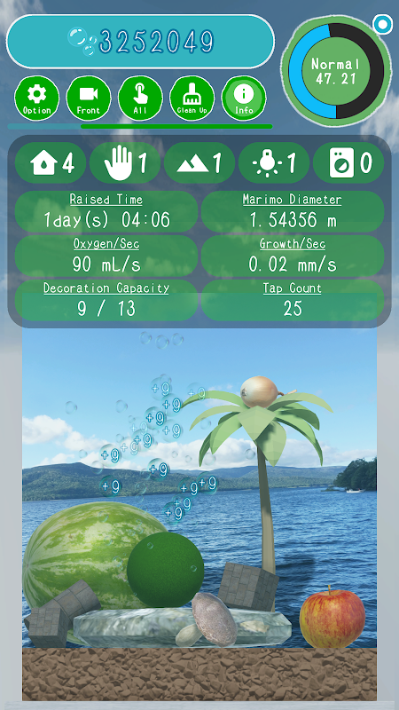 Nhấn vào Marimo để nhận bong bóng oxy. Oxy dần dần được giải phóng và tích lũy mà không cần làm gì cả.