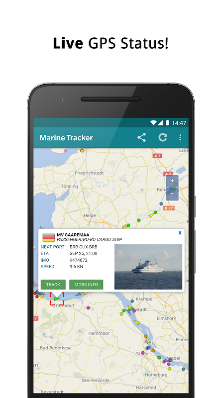 Bạn có muốn kiểm tra tàu hàng nào hiện đang di chuyển trước mắt hoặc xác định điểm khởi hành, loại tàu và hãng tàu cùng một lúc không? Không có vấn đề gì - bạn có sẵn những thông tin này với radar tàu Marine Radar.