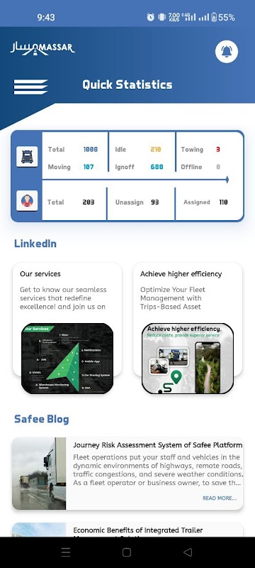 Ứng dụng MassarTrack là giao diện di động của ứng dụng web: https://aamt.massarsolutions.ae/. Ứng dụng này cho phép người dùng giám sát trực tiếp xe của họ và nhận được cảnh báo trong các điều kiện nhất định. Bên cạnh đó, nó cung cấp một số báo cáo đơn giản để được xem thông qua các thiết bị máy tính bảng / điện thoại thông minh của họ.