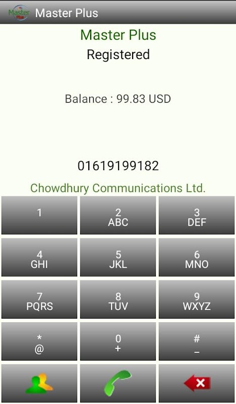 Master Plus mobile dialer is a very easy and user friendly android dialer for Mobile VoIp call. The dialer can run smoothly in any version of android phone. This small and easy installable app help you to connect with your service provider provided soft switches quickly. Master Plus mobile dialer required a minimum bandwidth for connecting and originating VoIP calls. User may charge through their telecom operators for data services. It’s run smoothly in any private network.