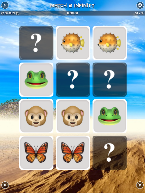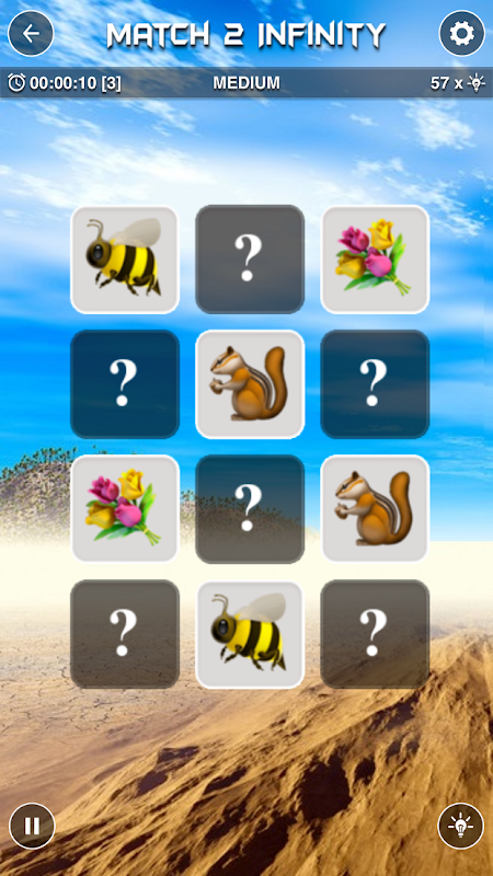 "Match 2 Infinity" là một trò chơi trí nhớ cổ điển dựa trên trò chơi tìm cặp truyền thống.