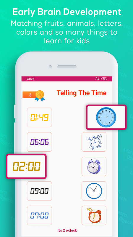 Tìm hiểu các bộ phận cơ thể 👂, vị trí, các bài kiểm tra IQ đơn giản dành cho trẻ em ở tuổi đi học, số đếm, phép tính tổng và phép trừ cơ bản, thời gian ⌚, tín hiệu giao thông 🚦, đồ vật trong lớp học và hơn thế nữa. Nó tăng cường tốc độ phát triển của trẻ bằng các hoạt động lành mạnh của não bộ.