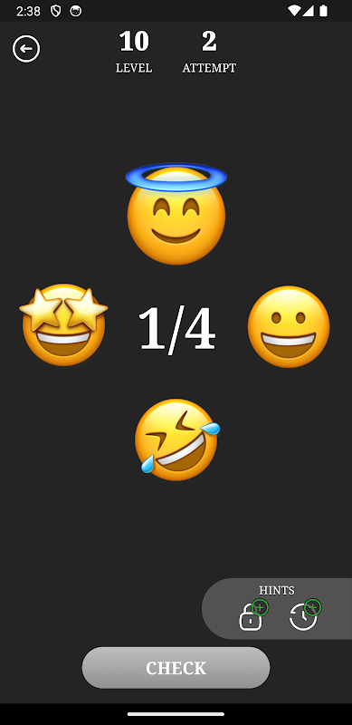 Chào mừng đến với "Matching" – một trò chơi sẽ khiến não bạn hoạt động hết công suất! Trong trò chơi giải đố hấp dẫn này, bạn cần đoán chuỗi ẩn bằng cách sắp xếp lại các yếu tố. Tăng cường logic và trí nhớ của bạn trong khi tận hưởng thiết kế tối giản! Nhiệm vụ của bạn là tìm ra sự kết hợp chính xác. Kiểm tra kỹ năng logic của bạn và cải thiện trí nhớ bằng cách giải các chuỗi có độ dài khác nhau. "Matching" không chỉ là trò tiêu khiển giải trí mà còn là bài tập có lợi cho não của bạn. Đắm mình vào thế giới của trò chơi giải đố và cảm nhận sự thỏa mãn khi chiến thắng!