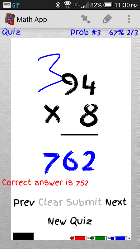 MathApp is a simple no frills app which allows young kids to practice their math skills right on a smart phone or tablet with the touch of their fingertips. The app is designed to allow kids or anybody to work out basic arithmetic problems on the screen as if working on a whiteboard. The goal is to encourage kids to practice "working out" problems and showing work.