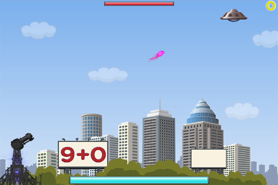 The object of the game is simple, when an alien fires the correct answer to the math problem, you let it pass and the city sucks up that bomb and converts it into a counter attack. You tap on all wrong math answers to stop them for destroying your city.