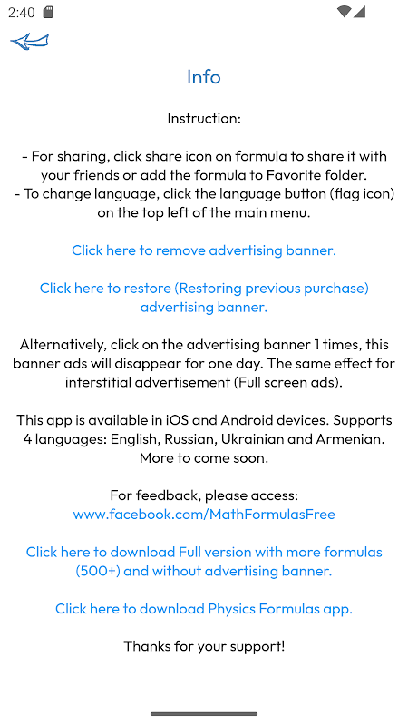Công thức Toán học là công cụ học tập hoàn hảo. Đây là một bộ sưu tập đơn giản, dễ sử dụng, dễ điều hướng gồm các công thức và chủ đề quan trọng nhất dành cho học sinh trung học và đại học. Có sẵn trong bốn ngôn ngữ. Nó bao gồm: