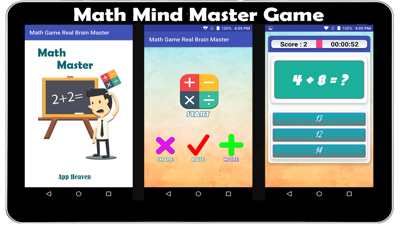Tìm hiểu các môn học của toán học theo cách thú vị và thú vị với toán học mới tốt nhất não thách thức trò chơi toán học trò chơi thực sự não tổng thể toán học cho trẻ em. Nó là một niềm vui toán học học tập với trò chơi toán học thú vị toán học cho tất cả các trò chơi não toán học tuổi. Bây giờ Toán là thú vị Tăng nghệ thuật thêm trừ phép phân chia vấn đề thách thức toán học tâm trí với các cấp độ khó khăn khác nhau. Đơn giản, toán học thạc sĩ thiết kế ứng dụng não cho trẻ em và cho lứa tuổi với giao diện người dùng thân thiện. Giải quyết các vấn đề toán học theo cách thú vị và vui nhộn nhất có sẵn trên các trò chơi toán học chơi trò chơi cho lớp.
