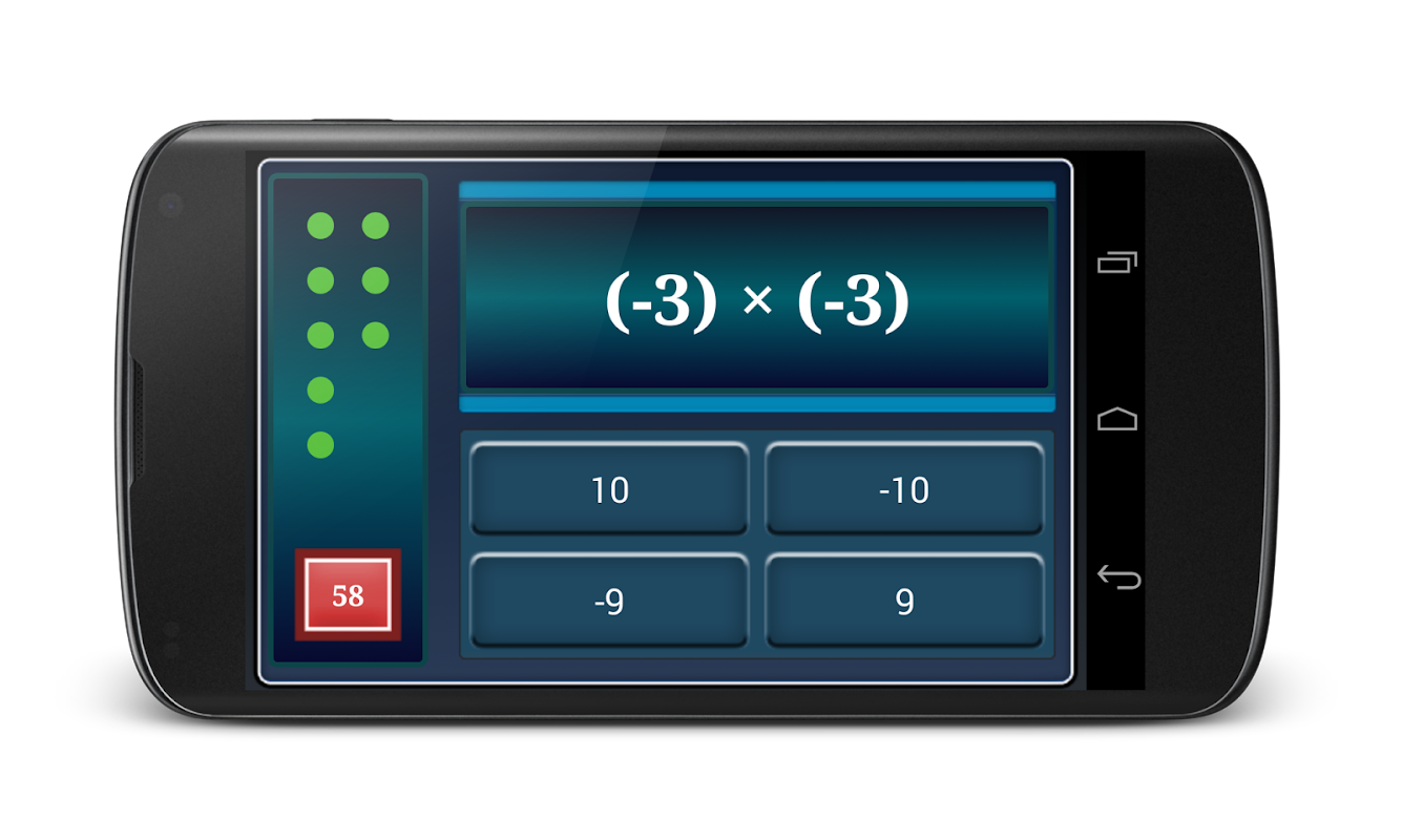 Toán số âm thực hành là một trò chơi giáo dục đào tạo và các bài tập toán học khác nhau khoan liên quan đến các số âm. Trò chơi là đơn giản - chọn một thể loại câu hỏi, và trả lời câu hỏi nhanh như bạn có thể. Trò chơi kết thúc khi bạn thu thập 10 câu trả lời đúng (mỗi câu trả lời sai bị trừng phạt 5 giây). Sau đó bạn có thể xem câu trả lời không chính xác.
